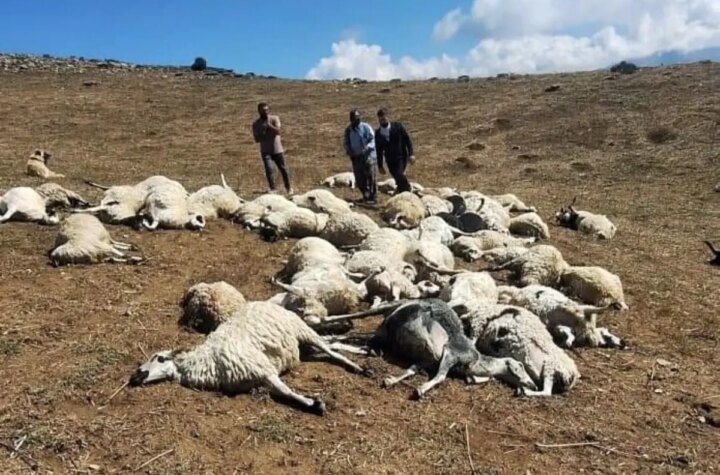 Tunceli'nin Pülümür ilçesindeki bir yaylada yıldırım düşmesi sonucu Mikail Karakuş'a ilişkin 58 koyun telef...