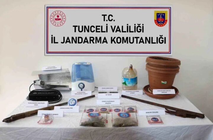 Tunceli'de jandarma grupları tarafından düzenlenen operasyonda, uyuşturucu üretiminde kullanılan materyallerle birlikte 100 gram esrar...